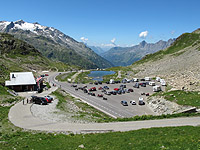Ist das Paradies durchfahren, wartet die nicht weniger schöne Passhöhe auf ankommende Besucher, bietet einen riesen Parkplatz, See und Restaurant.