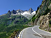 Ist das schroffe und an den Fels gebaute oberste Drittel geschafft, wird die Fahrt ruhiger. Kehren gibt es immer weniger zu durchfahren, vielmehr geht die Reise durch einen Talkessel. Immer mit Blick auf eine ganze Reihe Gletscher, die östlich des Talortes Wassen liegen. Ähnlich wie auf der Westseite, begleitet der Anblick einen bis ans Ende der Fahrt.