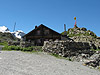 Von der Passhöhe aus führt ein schmaler Pfad noch ein paar Höhenmeter weiter nach oben. Von dort aus hat man nicht nur die Passhöhe als Ganzes gut im Blick, sondern kommt auf diesem Weg auch zum Berghaus Susten Hospiz. Das bietet Zimmer unterschiedlicher Preisklasse, bis hinunter zum Bettenlager für wenig Geld, und im Hinterhof eine ruhige Terrasse. Mit Kinderspielplatz, Aussicht auf einen Gletscher, alles ohne Motorrenlärm und Hektik.