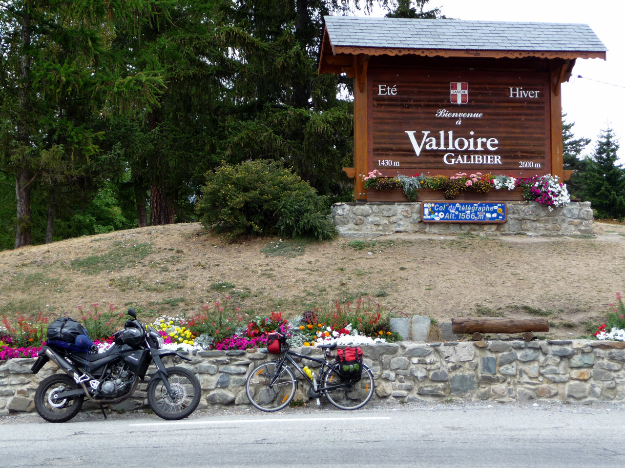 Ds Passschild aus dem Jahre 2009. Es befindet sich direkt gegenüber des Relais du Télégraphe in der Kehre auf der Passhöhe. Parkplatz und Infowand stehen links außerhalb des Bildes.