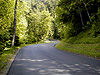 Die Südrampe ist nur im oberen Teil offen, wer einen Blick in die Landschaft werfen möchte, sollte dies auf dem ersten Kilometer erledigen. Dahinter ist fast die ganze Strecke links und rechts dicht bewachsen, die Straße windet sich auf unzähligen, meist weichen Kehren durchs Grün. Der Asphalt lässt dabei zu wünschen übrig, in manchen Kehren und Kurven befinden sich Risse und Flicken an den denkbar ungünstigsten Stellen.