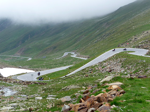 Im oberen Teil der Nordrampe, zwischen der Passhöhe und der Mautstation,