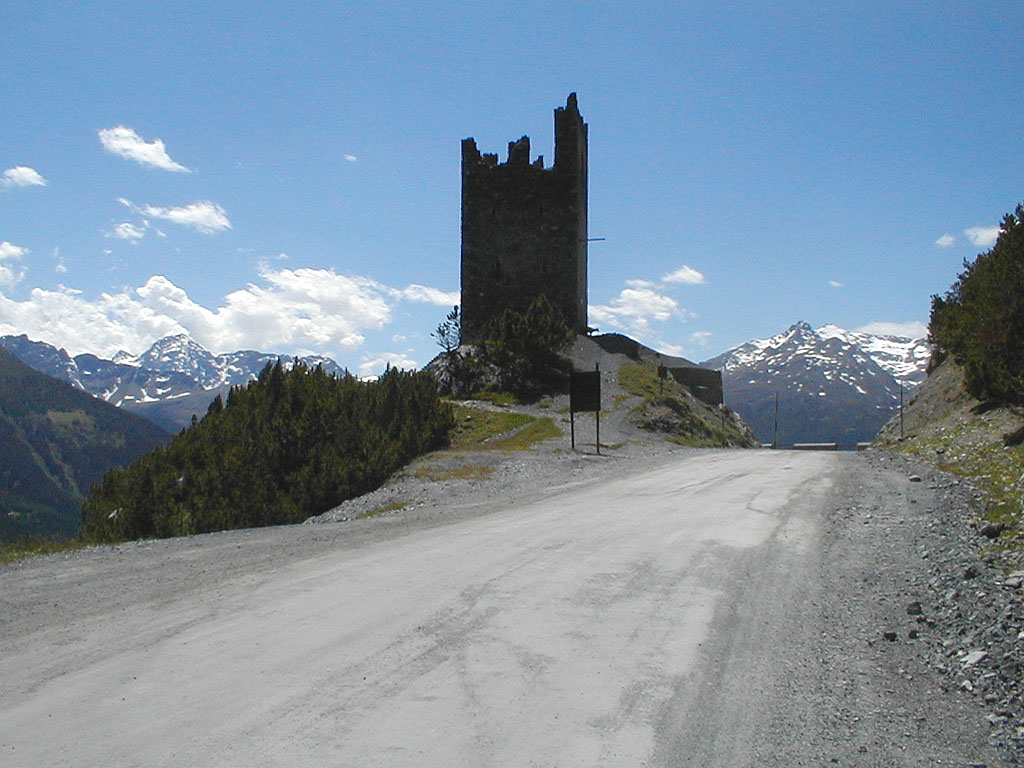 Blick auf die Befestiungsanlage, aufgenommen 1999 als die Straße noch geschottert war.