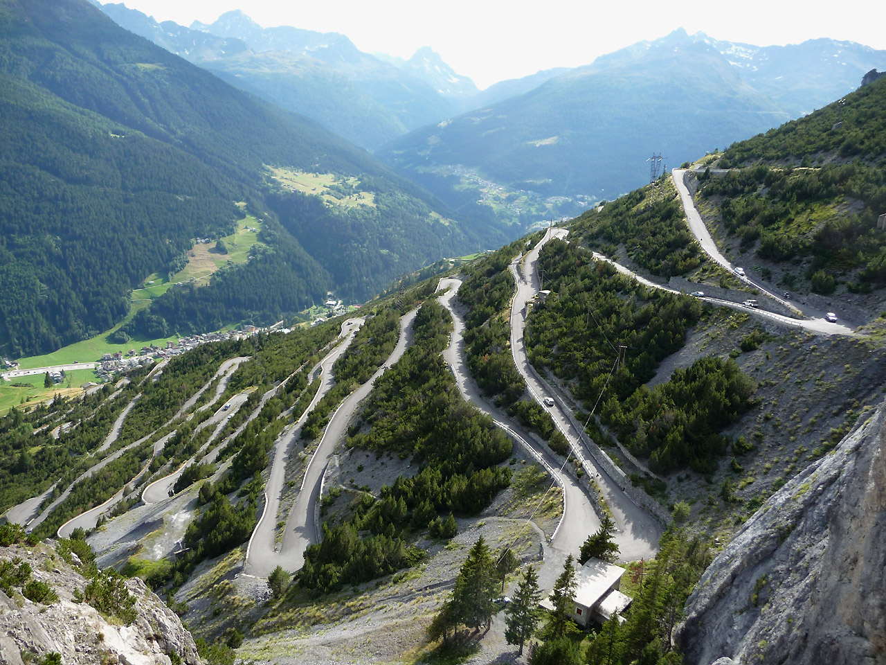 Blick auf die Kehren im oberen Bereich der Auffahrt.