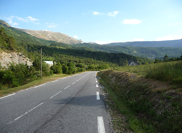 Von den Schluchten der Ostrampe ist auf der Westrampe nichts zu sehen. Im oberen Teil geht es durch hügelige Landschaft, bevor man im unteren Teil am langen Lac de Castillon vorbei fährt.