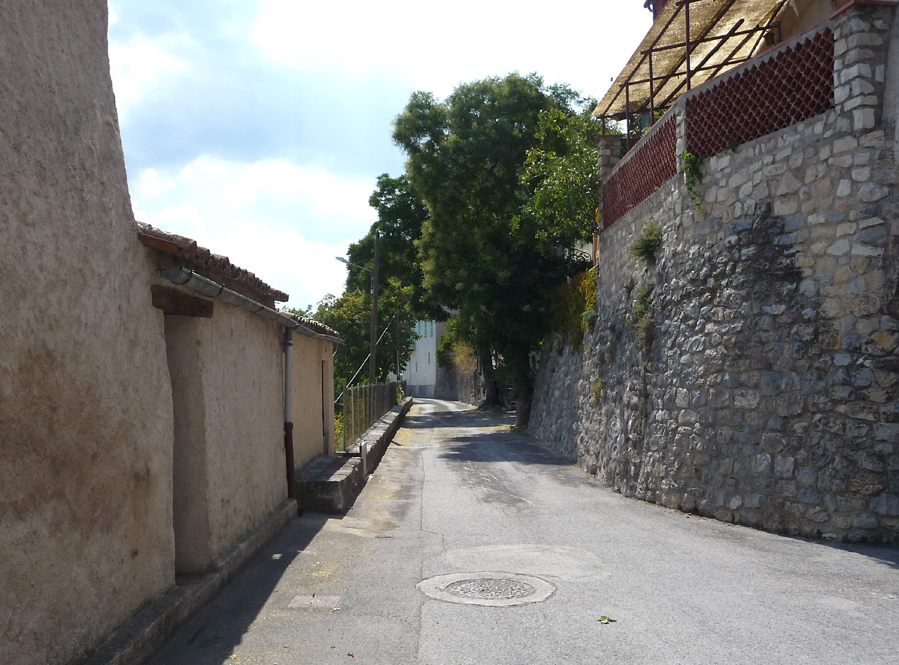 Aufnahme aus dem Ort La Rochette, der sich im unteren Drittel der Ostrampe befindet. Das Bild wurde direkt vor dem Tunnel im Ort erstellt (rechts außerhalb des Bildes), der Blick geht nach Westen.