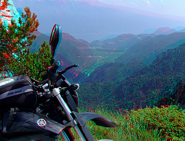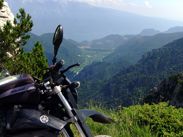Blick vom Passo di Tremalzo(i) (genauer gesagt dem Passo dei Gaton) hinunter ins Valle di Bondo, durch das die Anfänge des Passo Nota führen.