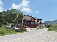 In dem offenen Bereich fährt an mehreren Unterkünften vorbei, von denen einige im Sommer jedoch nicht im Betrieb sind. Die Passhöhe markiert schließlich ein Albergo/Ristorante, das nicht zu verfehlen ist. Für all diejenigen, die keinen Schotter mögen, keine Ausnahmegenehmigung in der Tasche haben, oder sich nicht mit der örtlichen Polizei anlegen wollen, ist dort der Wendepunkt erreicht, denn hinter dem Albergo beginnt die geschotterte Südrampe