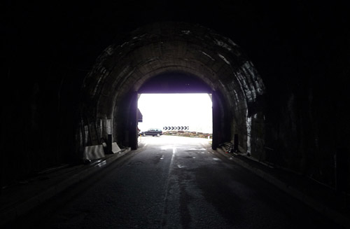 Timmelsjoch, und auf der anderen Seite durch den langen, stockdunklen Tunnel ...