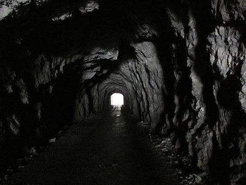 ... oben angekommen geht es durch einen stockdunklen Tunnel.