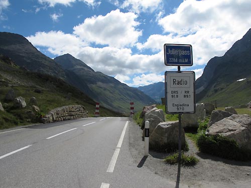 Splügenpass wollte ich nicht komplett fahren, aber kurz auf der Passhöhe nach dem Rechten schauen, dafür war Zeit vorhanden. Außerdem sind es bis oben nur 10 Kilometer, und dazu noch geradlinig-langweilige, die mit hohem Tempo gefahren werden können.
