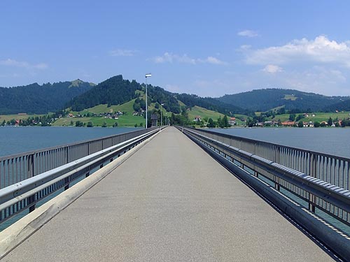 Sihl-See, der gleich zu Anfang auf einer schmalen Brücke überquert werden will.