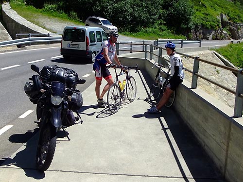 Grimselpass endet. Dort versuchte ich, ein Zimmer in dem Hotel zu finden, in dem auch der Radler untergekommen ist und das er mir empfohlen hat. Noch auf ein Bierchen mit dem zu plaudern, das hätte mir gut in den Kram gepasst. Leider waren alle Zimmer belegt, somit wurde daraus nix. Sehr schad, denn der Kerl war mir sympatisch, spätestens ab dem Zeitpunkt, als er mich knappe 15 Jahre zu jung geschätzt hat.