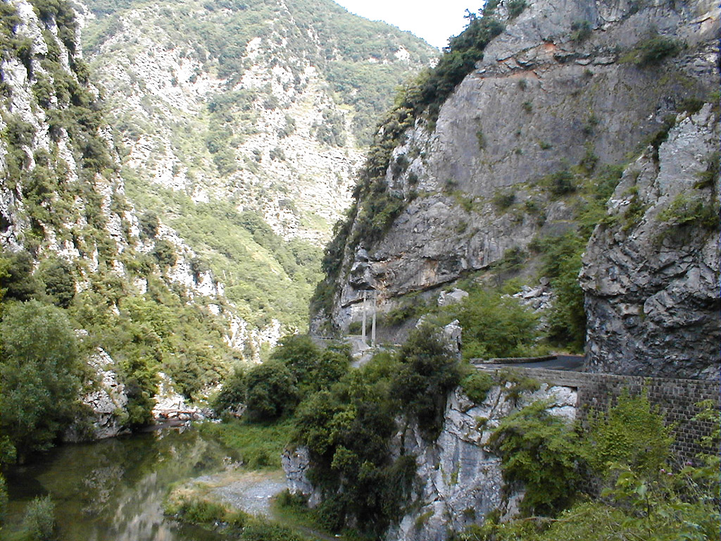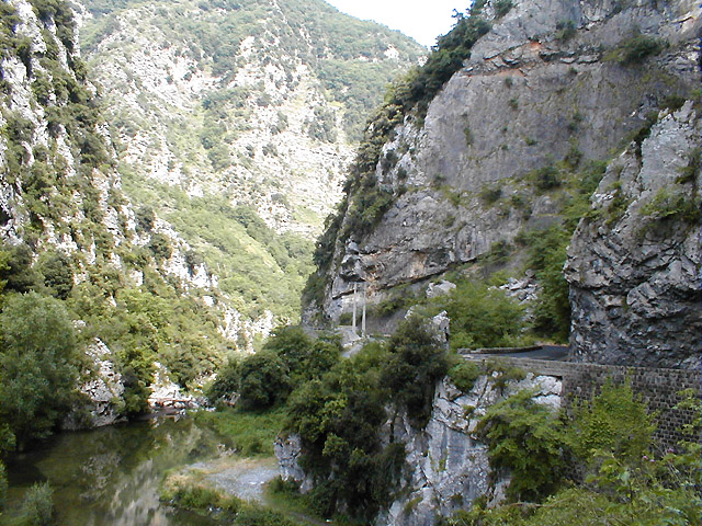 Das Bild wurde im unteren Bereich der östlichen Südrampe aufgenommen, wo der Weg auf Höhe des Flusses Piaon durch die gleichnamige Schlucht Gorges du Piaon führt.