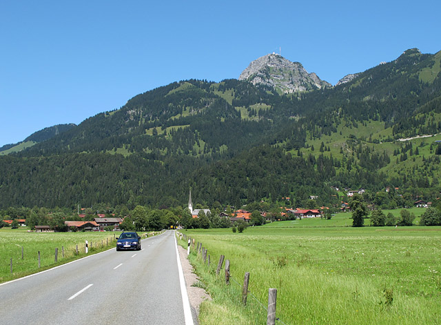 und das oben auf dem Berg befindliche Observatorium. Der Ort davor ist Bayrischzell.