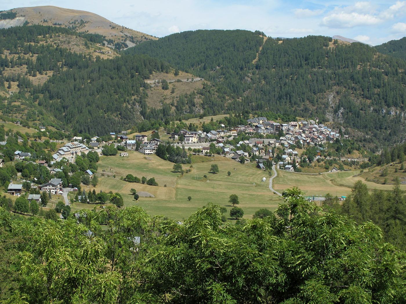Der Ort Beuil dient als Knotenpunkt zwischen den beiden Pässen Couillole, Valberg und der schluchtigen Strecke durch die Gorges Cians(i). Aufgenommen wurde das Bild von der Ostrampe des Valberg. An der Kreuzung, an der alle aufeinandertreffen, ist eine Tankstelle zu finden. Hier leider verdeckt vom Haus mit dem leicht hellblauen Dach, links der Bildmitte.