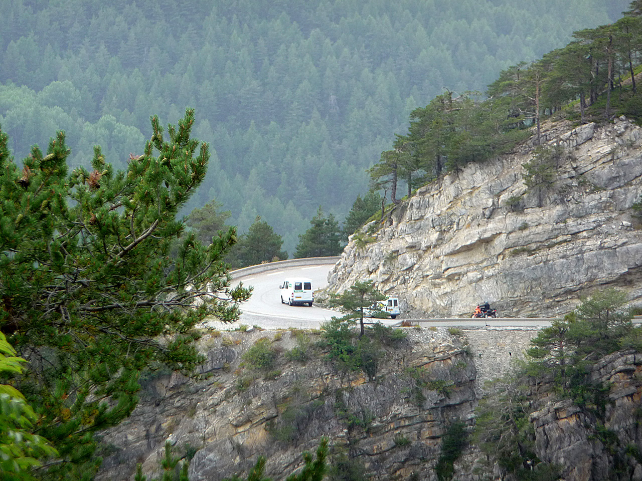 -Nordrampe führt die Straße hart am Fels entlang.