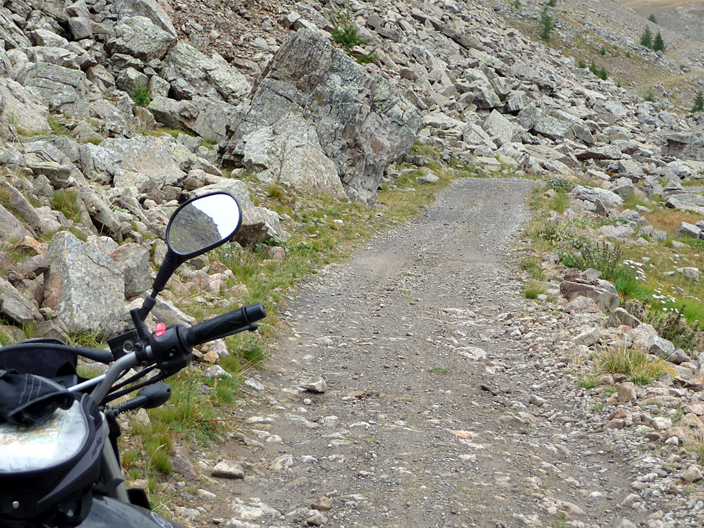 Auf Murmeltierjagd am Moutière. In dem Bild verstecken sich tatsächlich gleich zwei Stück. Der Mic hat sie vor Ort sofort gesehen, genau deshalb auch angehalten, ich habe im Stand mehr als eine Minute suchen müssen.