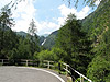Die komplette untere Hälfte liegt in dichtem Wald, mit kaum durchschaubaren Baumreihen links und rechts, in der oberen Hälfte wird es zu Anfang ein ganzes Stück kerniger. Die Straße führt mehrere Kilometer direkt an einer bröckeligen Felswand entlang, die steiler kaum sein könnte. Auf einer Seite die Wand, auf der anderen Seite kann man sich die zuvor gefahrenen Meter tief unten im Tal anschauen.