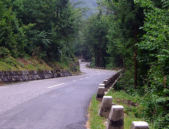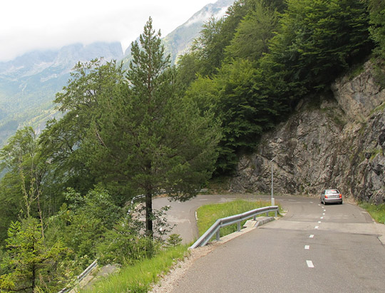 Predil, dessen Südost-Rampe nebst vielen Kurven auch noch herrlich viel Wald bietet.